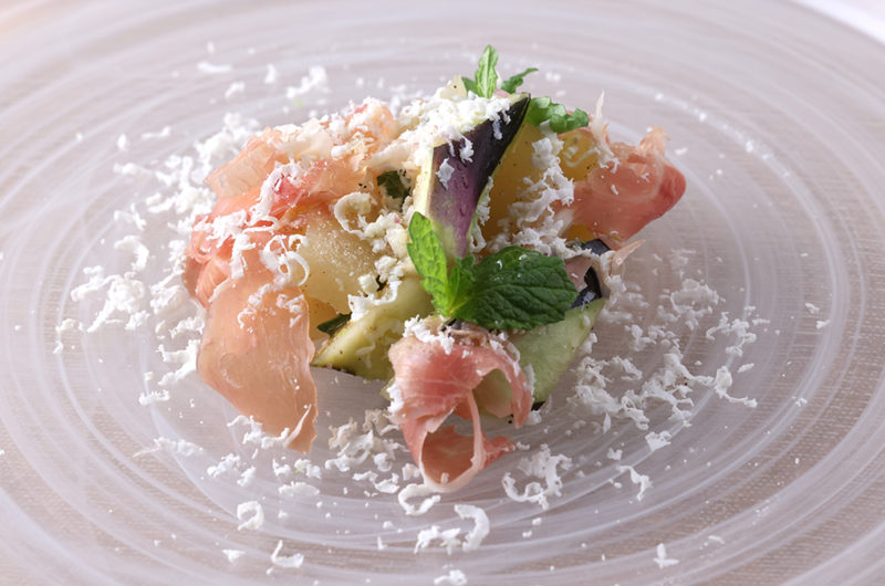 SENSYU eggplant, peach and ham,
