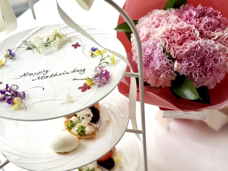 さらに、日頃の感謝を伝えるプレート付のデザートと、お母さまへカーネーションの花束をご用意いたしております。